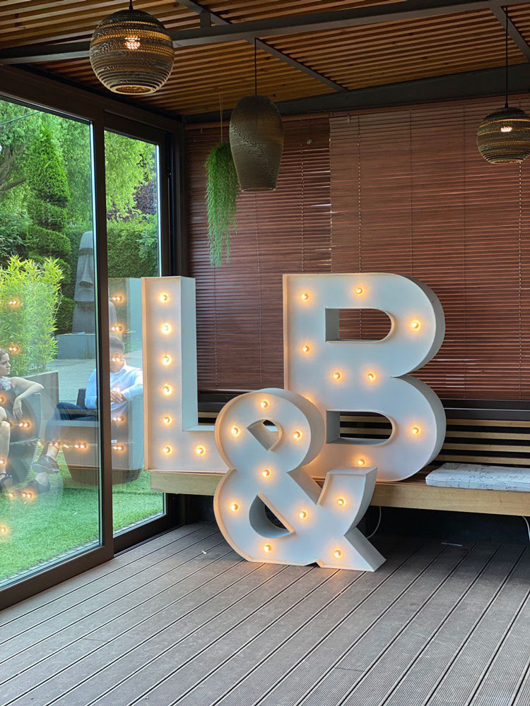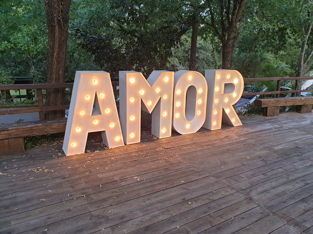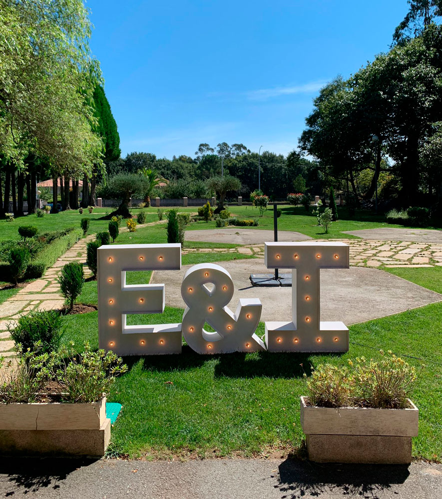 As Letras Xigantes, son un excepcional elemento decorativo para o voso gran día, xa sexa na zona de aperitivo, salón, ceremonia, zona de baile… Calquera dos lugares que decidades será o idóneo para que as nosas Letras Xigantes Decorativas queden espectaculares.